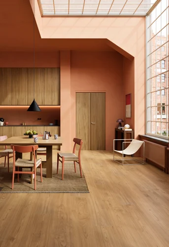 Đây là kiểu thẩm mỹ mang tính hoài cổ nhưng không lạc hậu. Với sàn nhà, các mẫu vân gỗ nhiều đường vân, họa tiết mô phỏng parquet mang đến chiều sâu và cá tính.